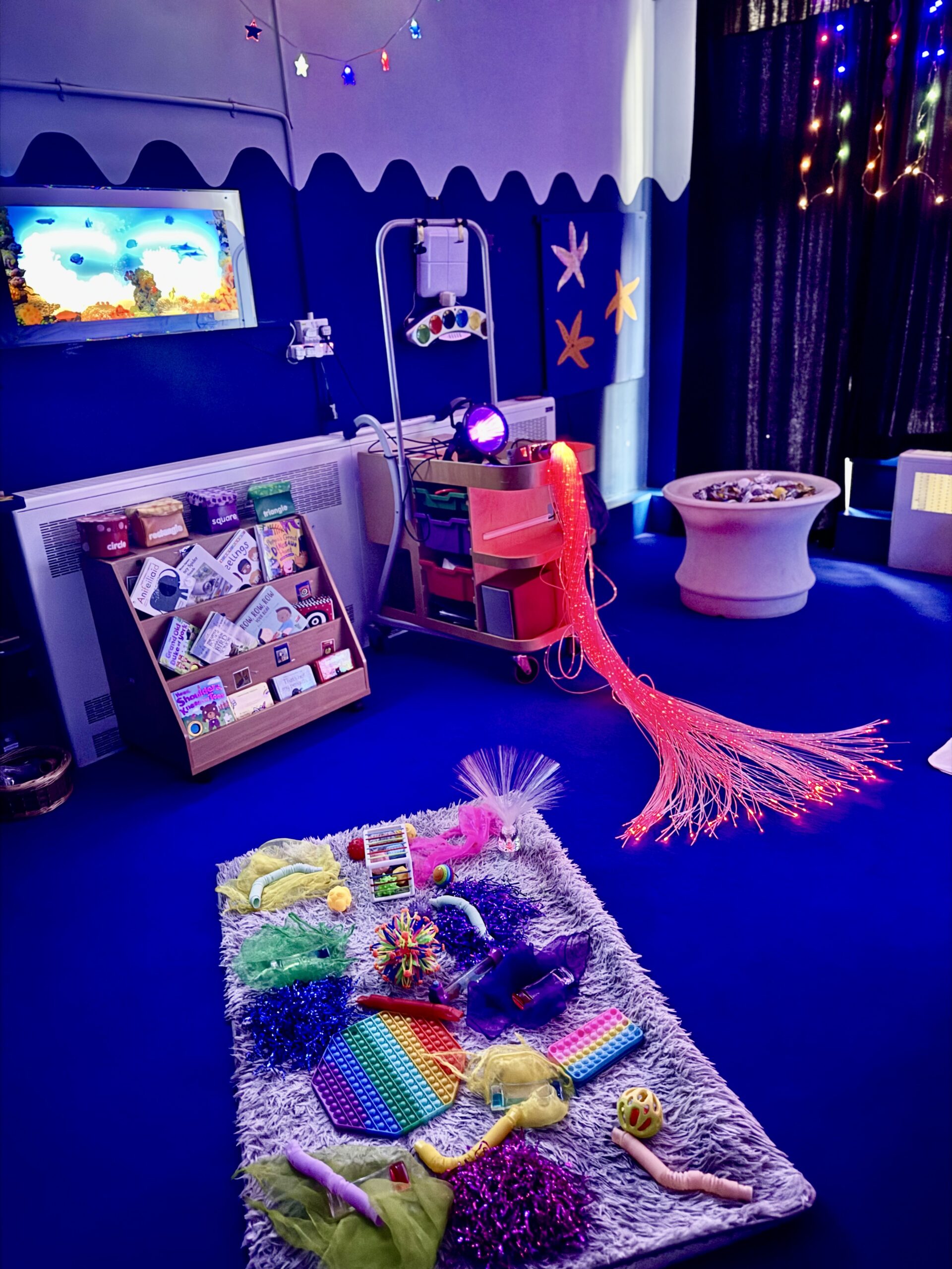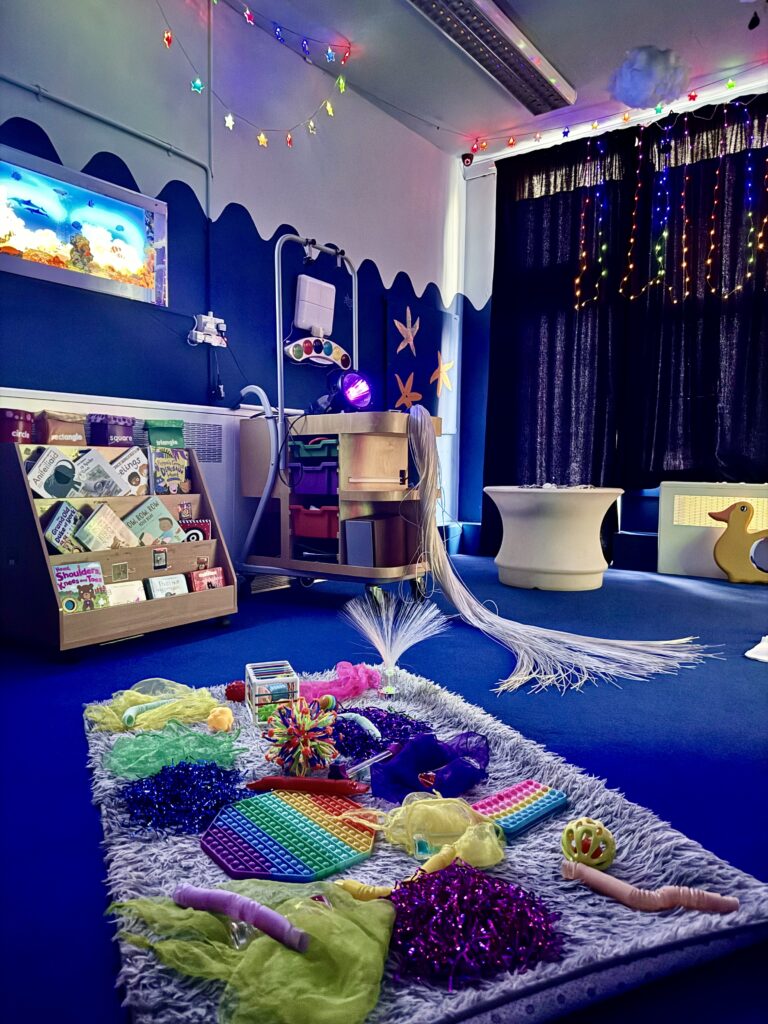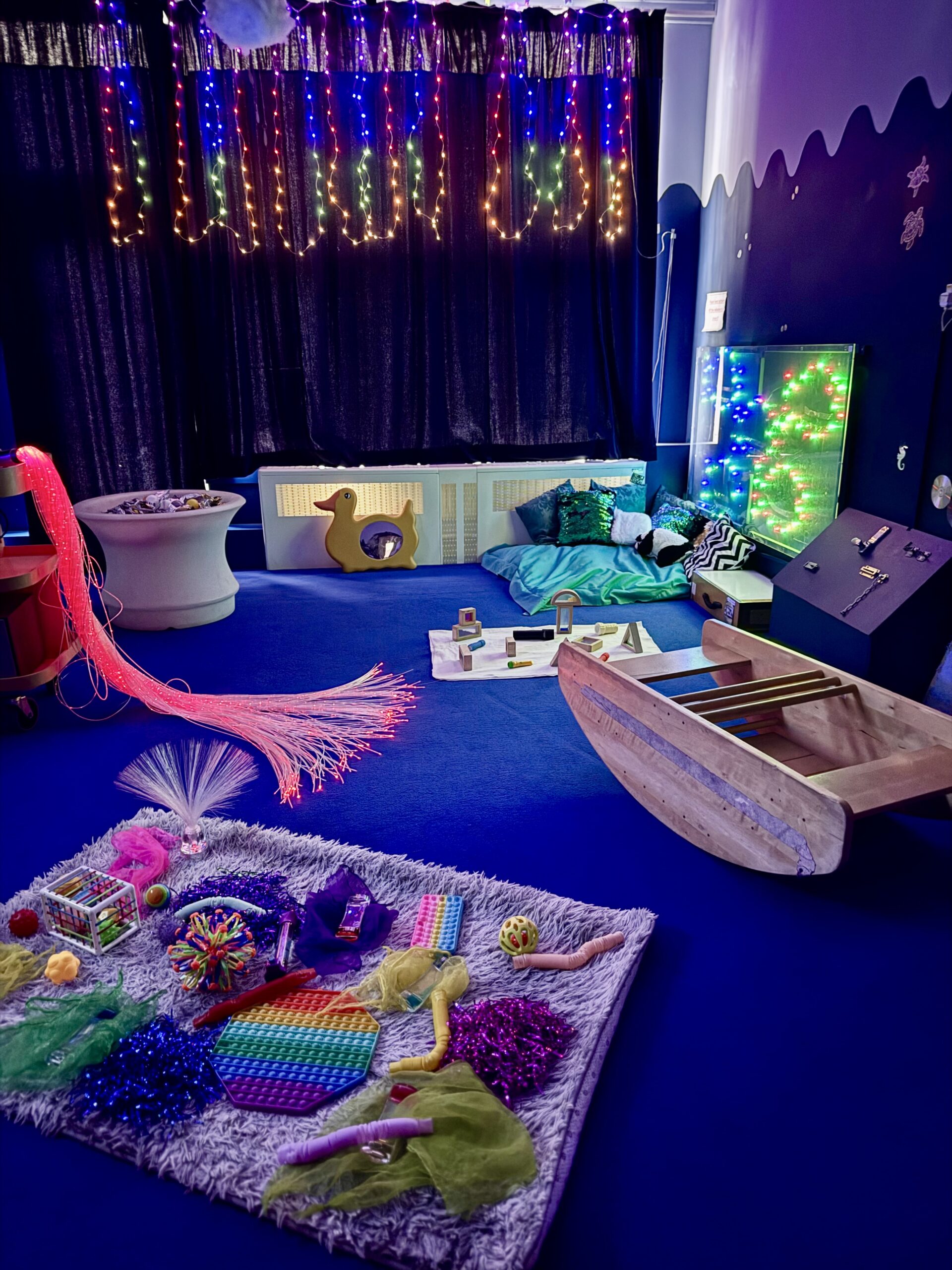 We have on the premises a large sensory playroom, this stimulating environment helps children learn the basic building blocks needed to process hearing, sight, smell, touch and taste.